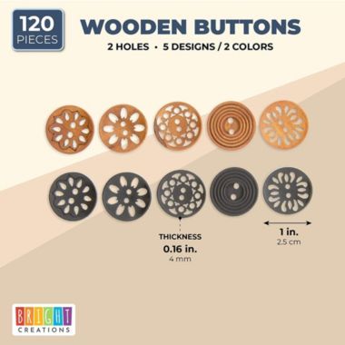 Okuna Outpost Wooden Buttons For Crafts And Sewing 5 Designs 0 98 In 120 Pieces Buybuy Baby
